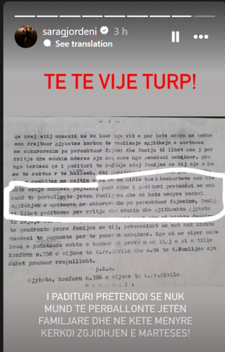 Modelja shqiptare, madje nuk u mjaftua me kaq. Ajo publikoi gjithashtu në Instagram edhe letrat e divorcit të prindërve të saj, duke fuqizuar tutje argumentet e dhëna.