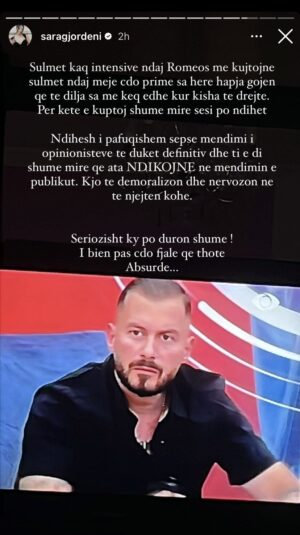 Seriozisht ky po duron shumë! I bie pas çdo fjale që thotë. Absurde…”– ka shkruar Sara, krahas fotos së Romeos.