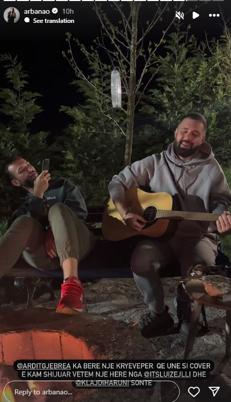 Ka qenë Arbana ajo që ka postuar në InstaStory një foto nga pushimet në Bogë me Klajdi Haruanin dhe bashkëshortin e saj, ndërsa krahas saj tregon se e ka shijuar shumë këngën e Luizit, duke i bërë tag këtij të fundit.