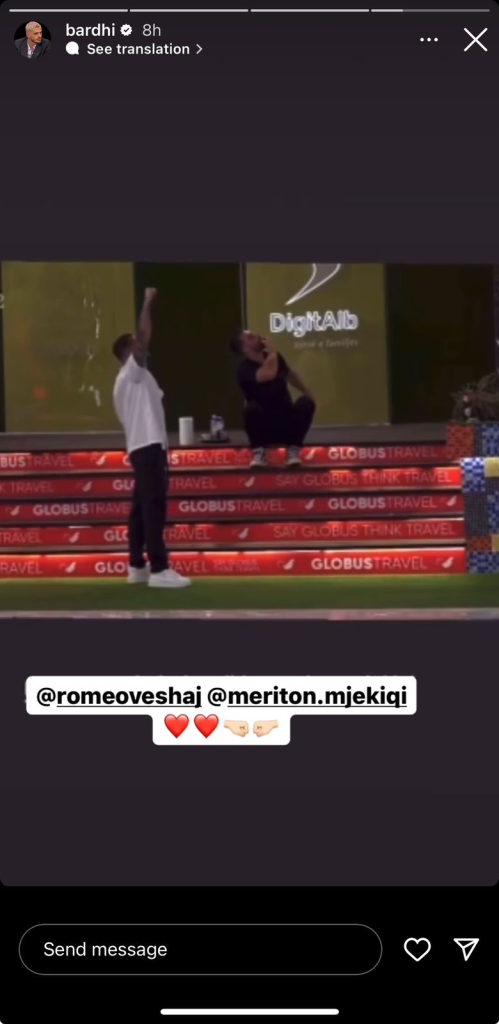 Bardhi, ka surprizuar dy miqtë e tij brenda shtëpisë së ‘Big Brother VIP Albania’. Ai ka nisur një dron, me një mesazh për Meritonin dhe Romeon, që së fundmi rregulluan miqësinë e tyre.