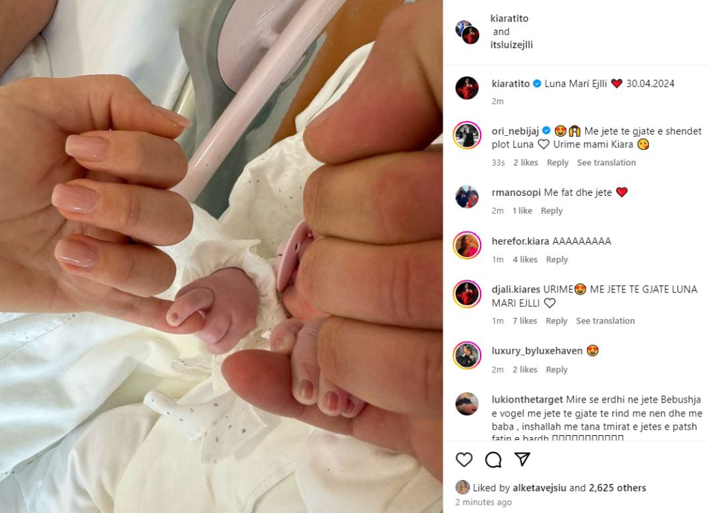 Luiz Ejlli dhe Kiara Tito janë bërë prindër për herë të parë së bashku.