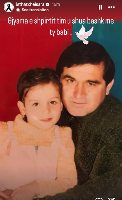 “Gjysma e shpirtit tim u shua bashkë me ty babi”, ka shkruar Xheisara në një postim në “Instastory”.