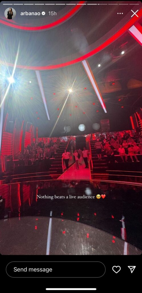 Por nuk ka mjaftuar me kaq, Arbana ka postuar edhe një tjetër foto të skenës, ku duket i gjithë publiku në sallë.