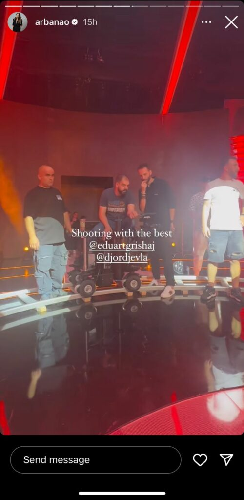 “Duke xhiruar me më të mirin, Eduart Grishaj” shkruan Arbana në një foto ku shfaqet partneri i saj në një studio televizive.
