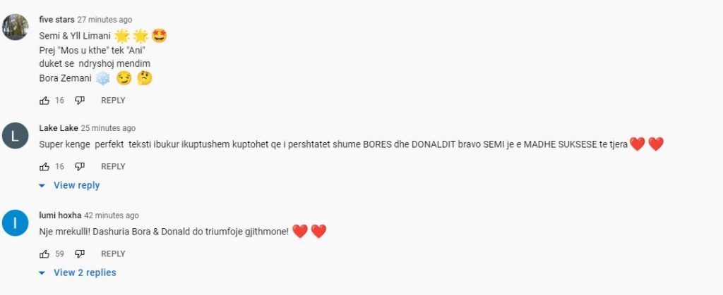 Ndjekësit menjëherë kanë vërshuar në komente duke shkruar se kënga është përsëri një dedikim për Borën dhe Donaldin, ashtu si kënga “Mos u Kthe.”