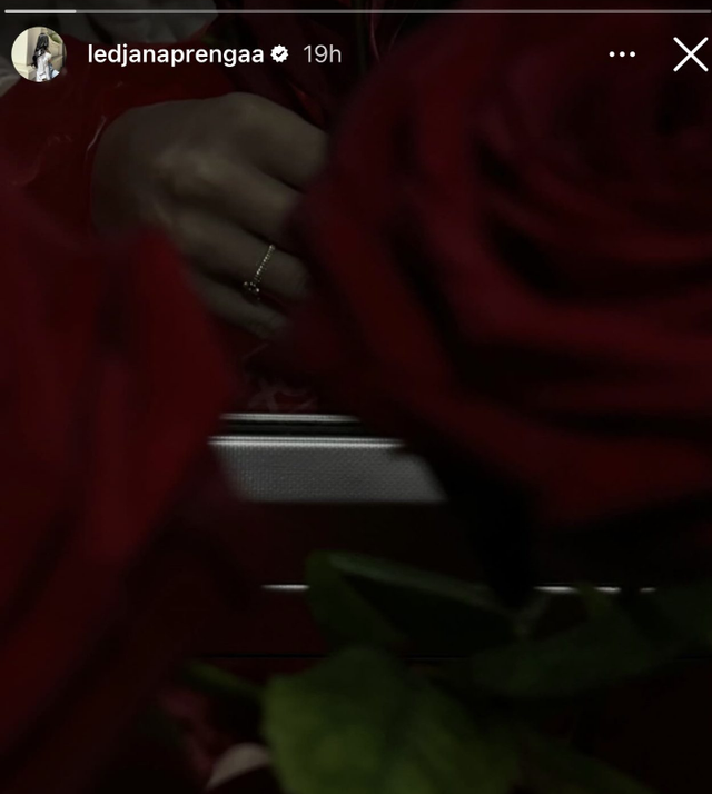 Me një story në instagram, ajo shihet me trëndafila të kuq dhe një unazë në gisht, teksa shkruan: Me ty është ndryshe.