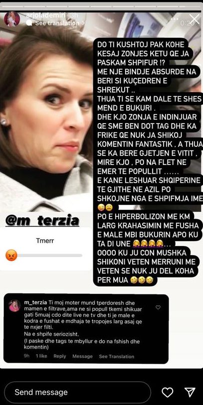 “Ti moj motër mund të përdorësh dhe mamanë e filtrave, ama ne si popull të kemi shikuar gati 5 muaj çdo ditë live në tv dhe ti je male e kodra e fushat e mëdhaja të Tropojës larg asaj që nxjerr filtra. Na e shpife seriozisht. (I paske dhe tags të mbyllur dhe do na fshish komentin.)”– shkruan ndjekësja.