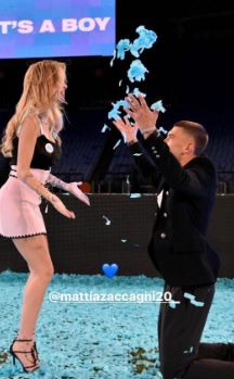 Sulmuesi i Lacios, Matia Zakanji dhe e dashura e tij Kiara Nasti kanë zbuluar gjininë e fëmijës që bukuroshja italiane pret me një festë spektakolare në “Olimpico”, ku u mësua se ai do të jetë një djalë.