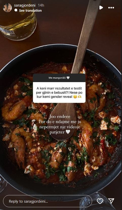 A i keni marrë rezultatet e testit për gjininë e bebushit? Nëse po kur kemi gender reveal”?- e pyeti fansi, ndërsa Sara iu përgjigj: “Jo ende, por do e ndajmë me ju nëpërmjet një videoje patjetër.”
