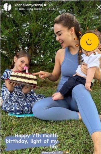 “Gëzuar 7 mujorin drita e jetës time Amen Kallaku”, shkruan Xhensila përbri fotos.