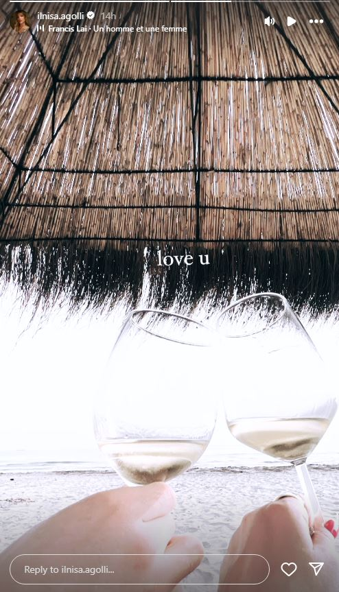 “Të dua”- ka shkruar Ilnisa krahas fotos së tyre me dy gota shampanjë në duar.