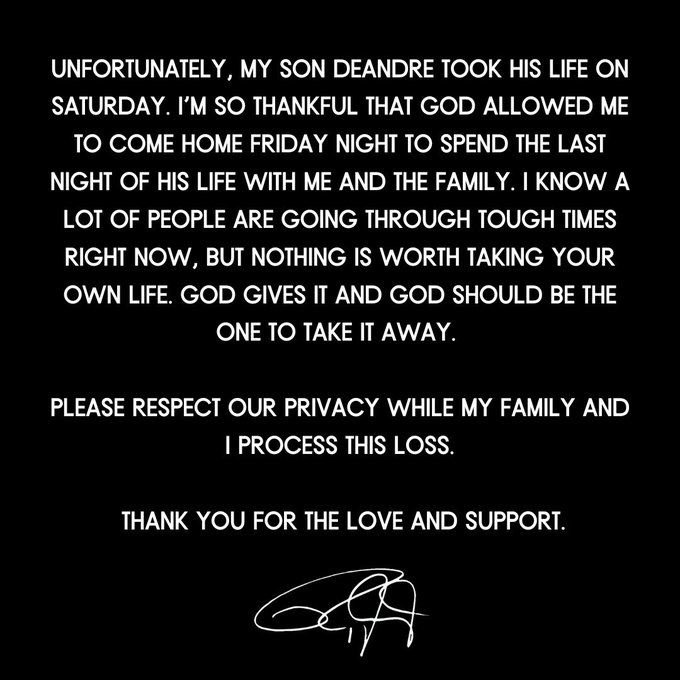 Në një postim në X, boksieri amerikan tha se ishte mirënjohës që kaloi natën me djalin e tij DeAndre para se ai t’i jepte fund jetës.