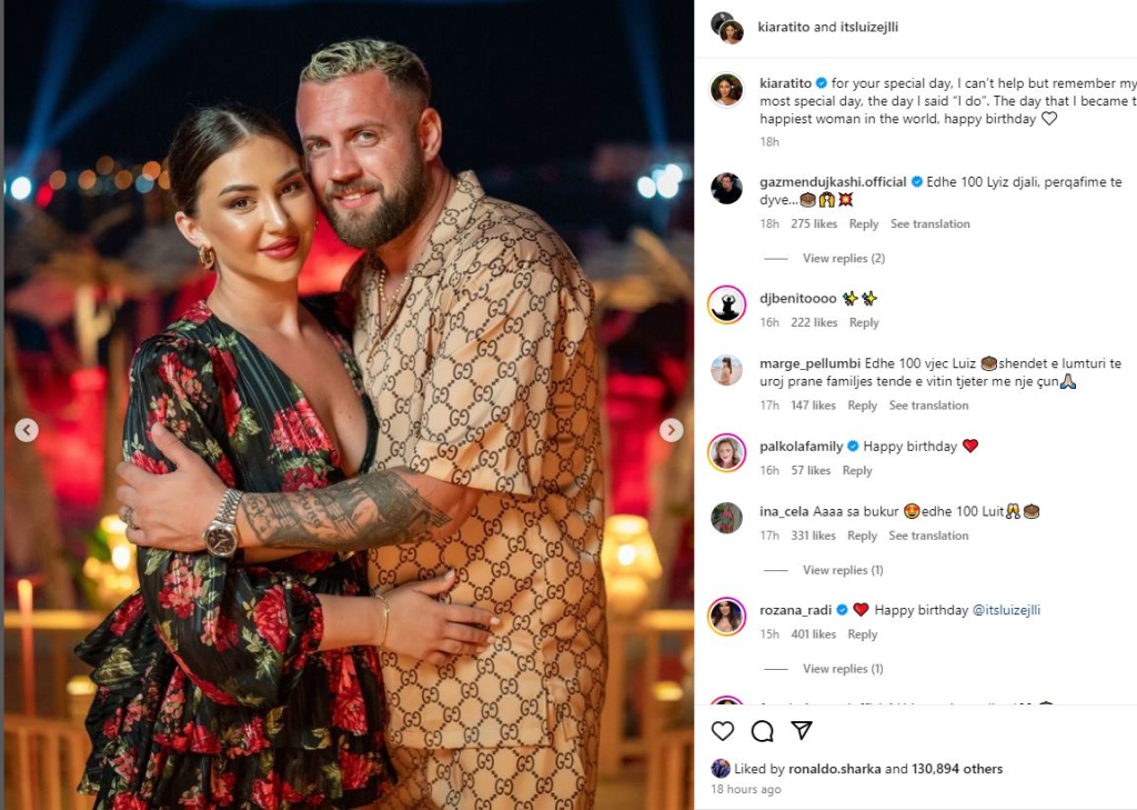 Ajo që ra tjeter në sy ishte urimi i veçantë i Kiarës për Luizin ku shkruante “Në ditën tënde më të veçantë, nuk mund të mos kujtoj ditën time më të veçantë, ditën që të thashë po. Dita kur u bëra gruaja më e lumtur në botë.