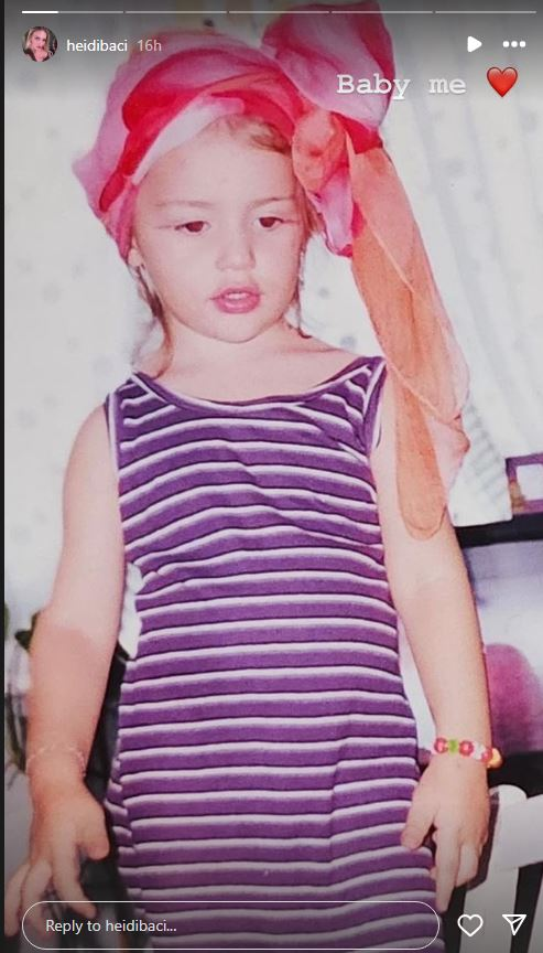 Ditën e djeshme në mesin e postiMeve që ka ndarë nga pushimet që po kalon shihet dhe një foto e Heidit kur ka qënë bebe, ajo e ka etiketuar postimin me mbishkrimin “Unë e vogël”.