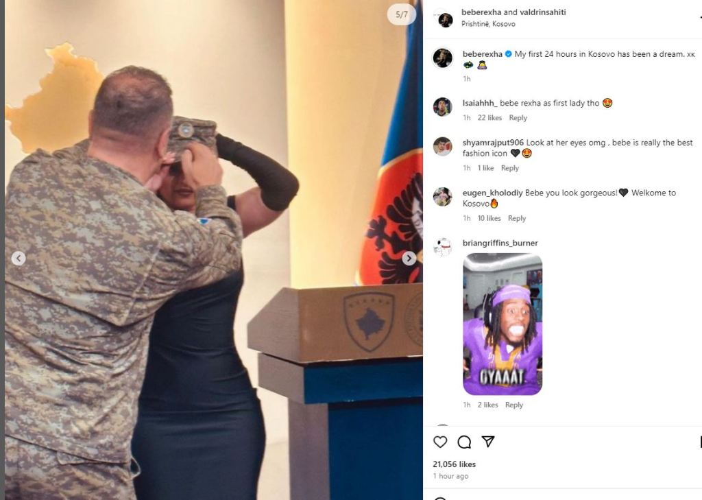 34-Vjeçarja është mirëpritur nga presidentja e Kosovës, Vjosa Osmani e cila ka shpërndarë edhe një foto me Beben në ‘Instagramin’ e saj ku shkruan:
