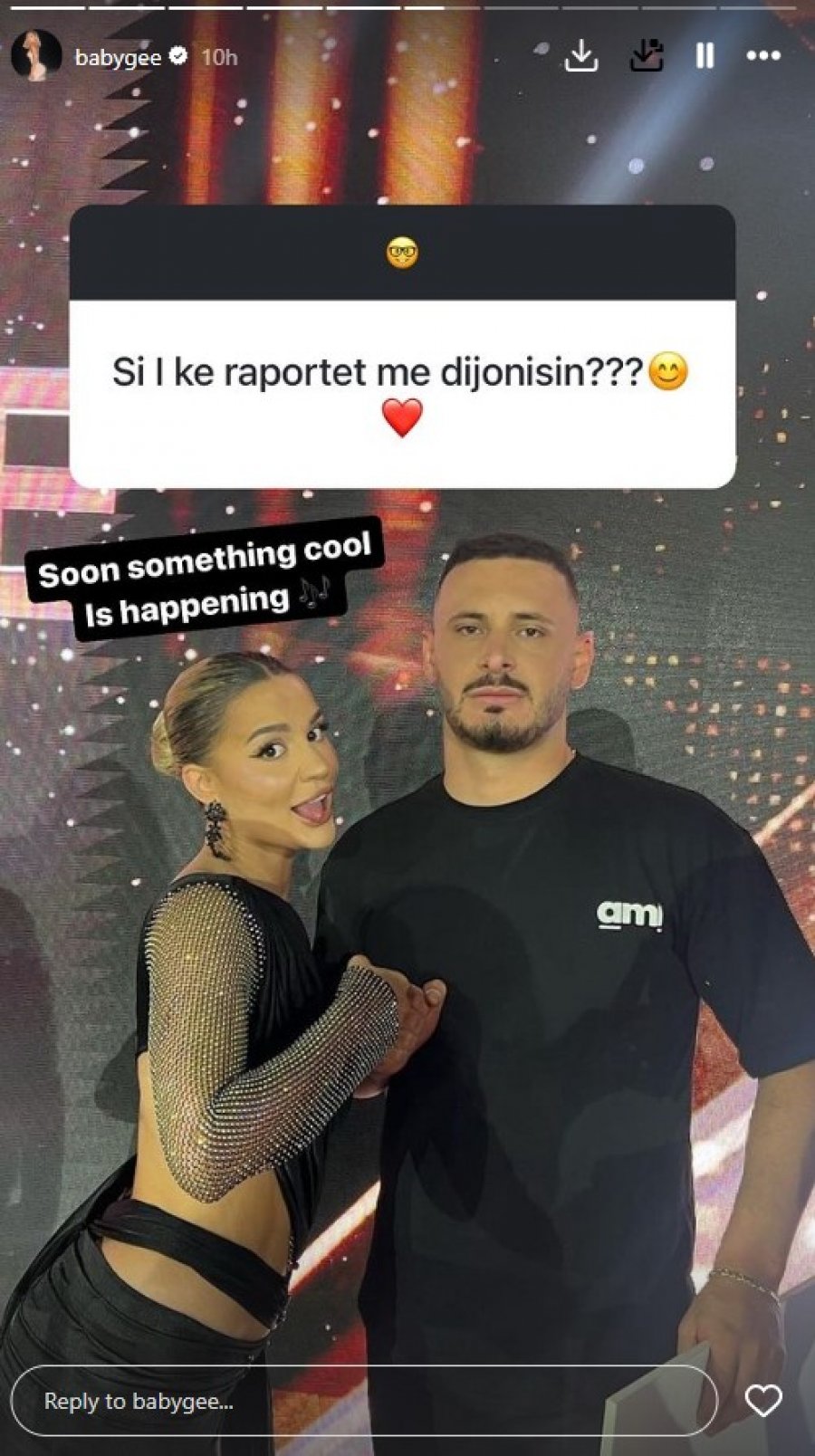Në një bisedë me fansat në Instagram, nuk mund të mungonte pyetja se ccfarë po ndodh jashtë me ta. Baby G ka treguar se ajo dhe Dijonisi kanë plane dhe duket se së shpejti do ketë një projekt muzikor mes tyre.