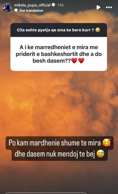 Ndërkohë një ditë më parë, Pupa ka bërë një bashkëbisedim virtual me ndjekësit e saj, të cilët kanë qenë kuriozë të dinë detaje nga jeta e saj private.