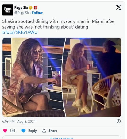 Këngëtarja me famë botërore, Shakira, u pa për darkë me një burrë misterioz në Miami javën e kaluar.