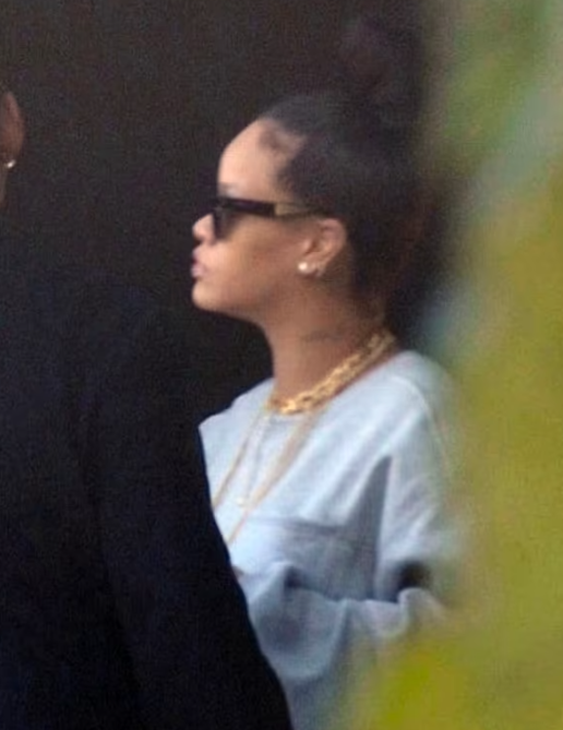 Riri kishte veshur rroba të gjera që i mbulonin gjithë trupin. Ajo u shfaq me një bluzë gri dhe pantallona të zeza. Nuk mungonin aksesorët: disa varse të mëdha dhe syzet teksa flokët i kishte bërë topuz.