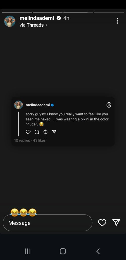 Mirëpo ajo ka mohuar aludimet e ngritura, duke theksuar se kishte pasur të veshura bikini me ngjyrë lëkure.
