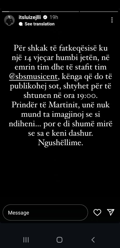 Përmes një postimi në Instagram, këngëtari njoftoi se në shenjë zie dhe respekti për këtë tragjedi, ai ka vendosur të shtyjë publikimin e projektit të tij të fundit, duke ofruar ngushëllimet e tij për humbjen e madhe.