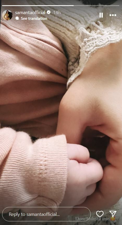 Samanta ka postuar dorën e një bebeje e cila pretendohet të jetë vajzë, ku shkruan: “Dorë biskota ime.”