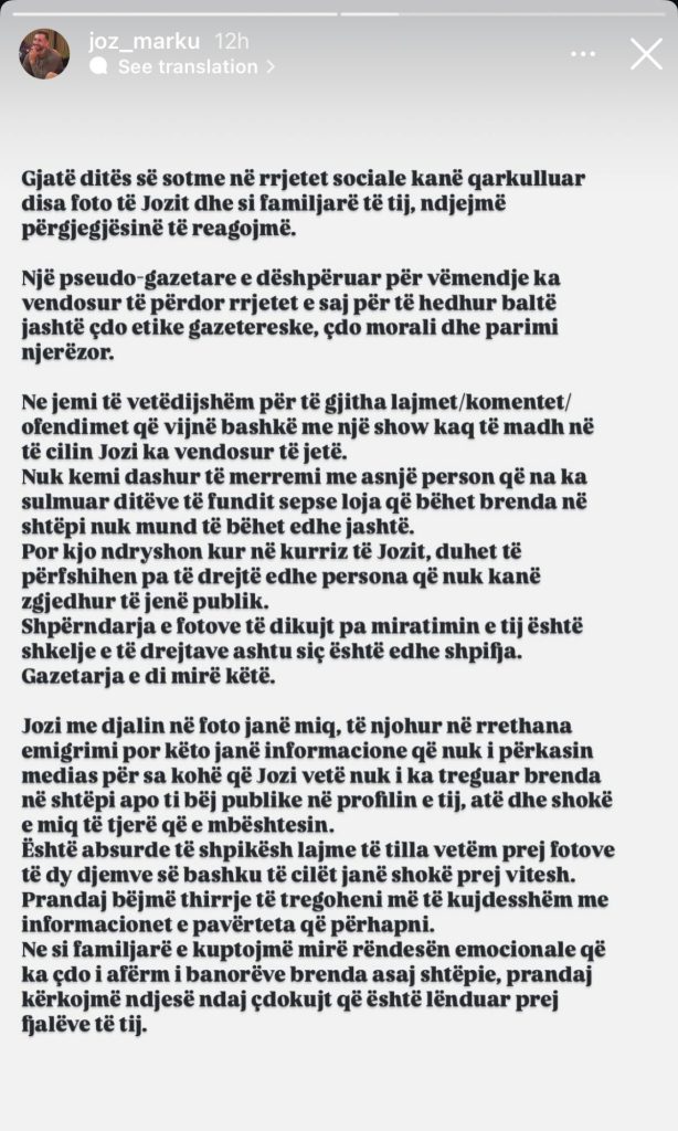 Pas aludimeve, ka ardhur edhe një reagim nga familja e Jozit, të cilët përgënjeshtrojnë atë që gazetarja ka thënë.