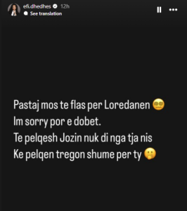 Pas Prime-it të djeshëm, Efi ka reaguar në rrjete sociale duke komentuar marrëdhënien e Jozit me Loredanën.