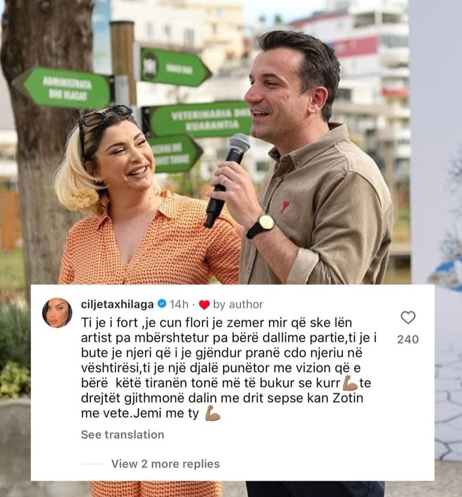 Moderatorja Klea Huta dhe balerini Ilir Shaqiri gjithashtu shprehën mbështetjen e tyre, duke vlerësuar përpjekjet e Veliajt për ta bërë Tiranën një vend më të mirë. Shaqiri theksoi se Veliaj e ka transformuar Tiranën nga një gjendje të keqe në një kryeqytet të denjë.