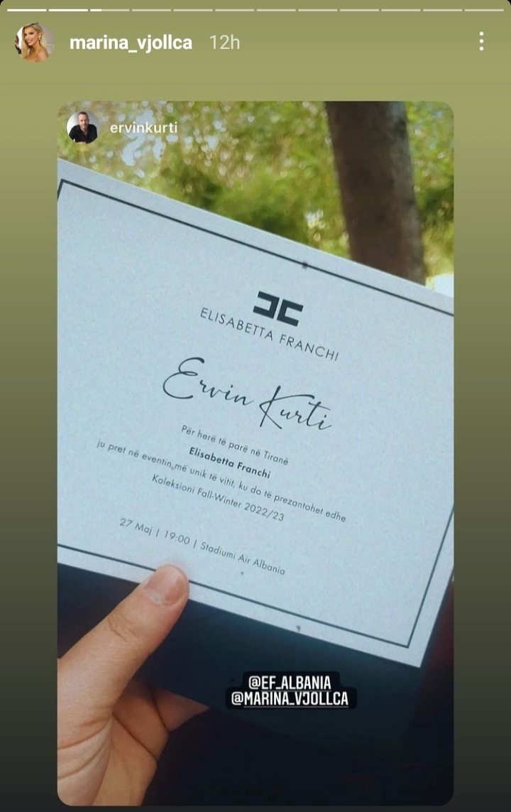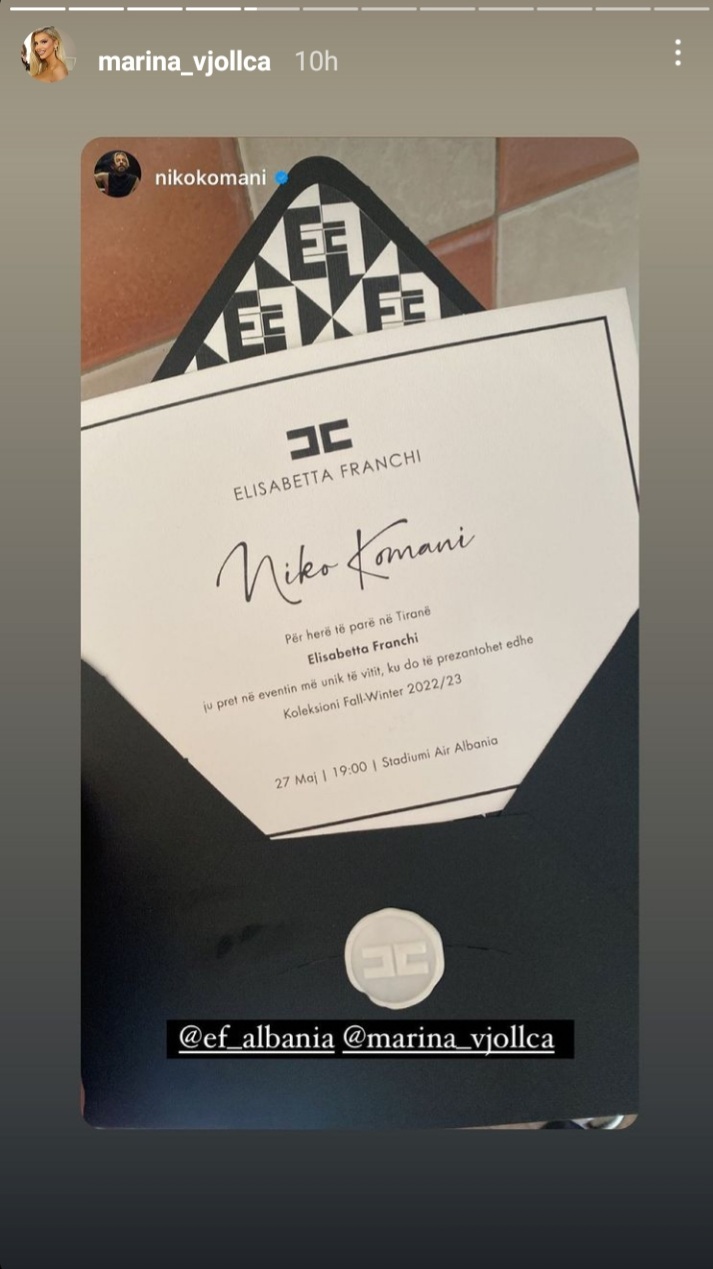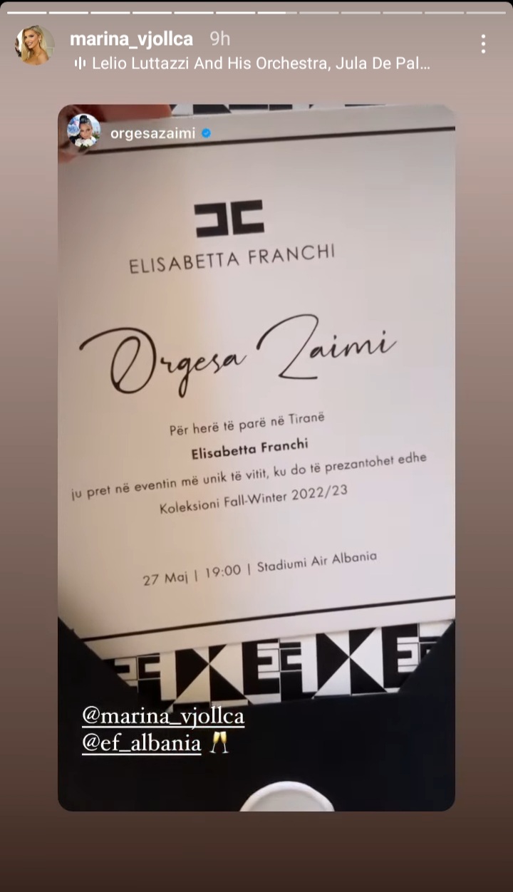 Në një postim në story ajo tregoi datën, orën,vëndin dhe disa nga të ftuarit që do të marin pjesë. Marina tha se sfilata do të zhvillohet në AirAlbania 27 Maj ora 19:00.