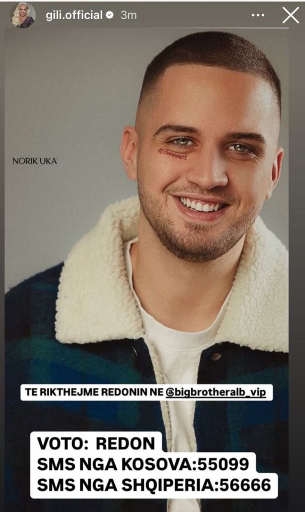 Këngëtarja e njohur Gili ka bërë një postim në rrjete sociale.Pasi djali i saj Redoni është në televotim për rikthimin e tij në ‘Big Brother VIP Albania’ e për këtë Gili ka kërkuar ndjekësve që të votojnë për të.