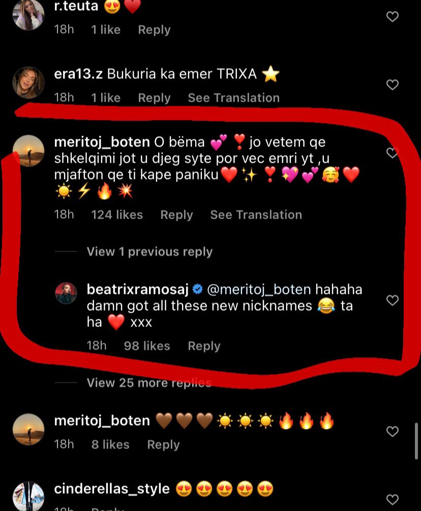 E teksa Beatrix është goxha aktive në rrjetet sociale duke postuar foto dhe video nga përditshmëria e saj, ndjëkësit shpërthejnë në komente nga me të ndryshmet kur herë pas here thumbojnë aktorin e humorit.