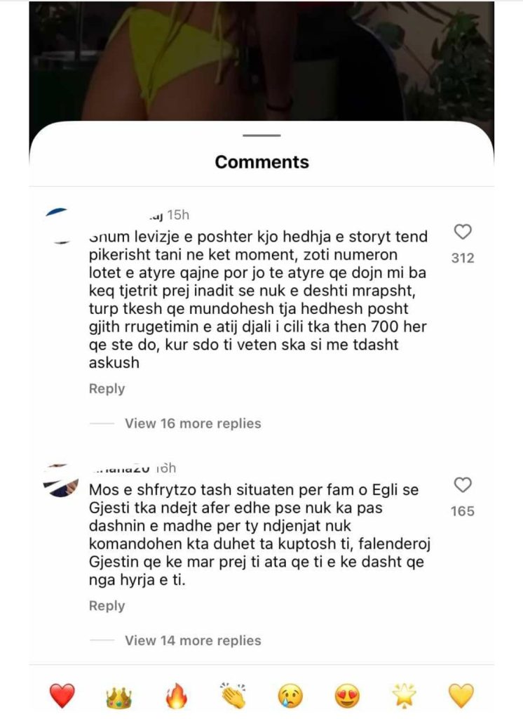 Në postimin e fundit Eglit i shkruan komente nga më të ndryshmet.