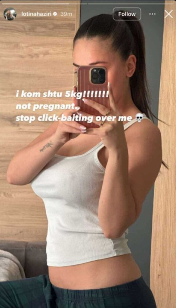 Lotina Haziri ka reaguar ashpër ndaj spekulimeve për një shtatzëni të mundshme, duke i quajtur ato “clickbait”. Në një postim në Instagram, ajo ka sqaruar se thjesht ka shtuar disa kilogramë dhe nuk është në pritje të ëmbël.