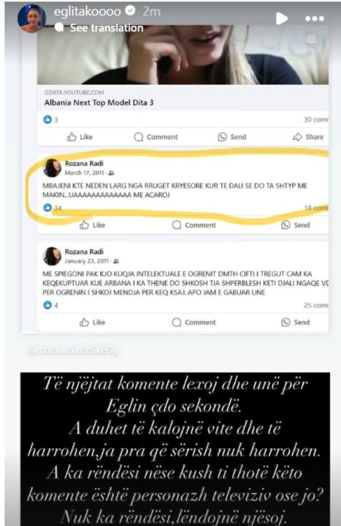 Siç duket opinjonet e tyre nuk i kanë pëlqyer menagjeres së Eglit.Pasi kjo e fundit ka publikuar komentet e Rozanës kundrejtë Nedës duke thënë se të njëjta fjalë po dëgjon e lexon edhe për Eglin.
