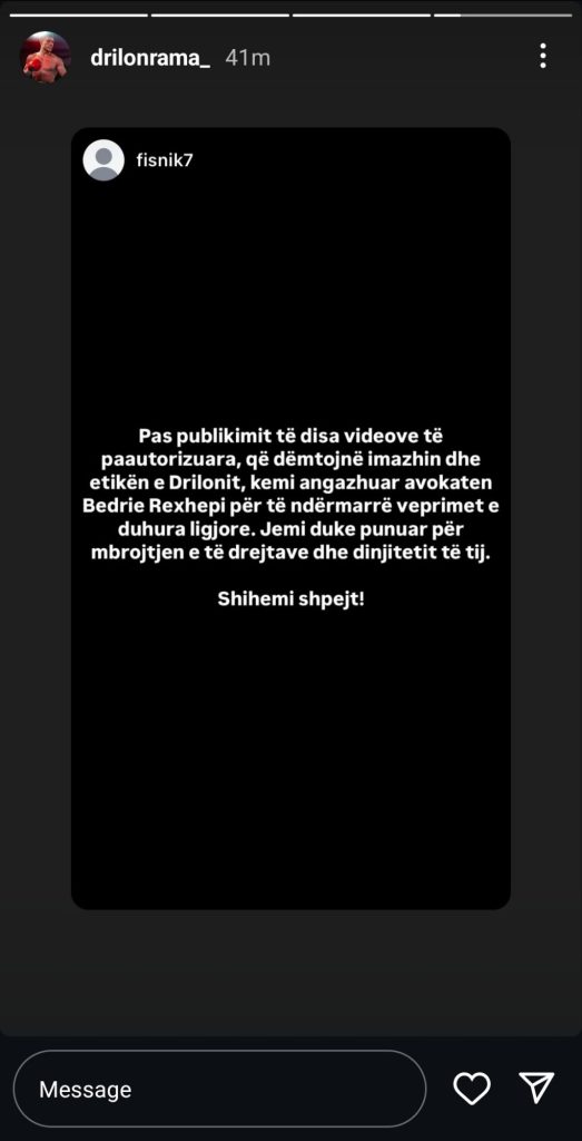 Fituesi i Big Brother VIP Kosova 3, Driloni, ka angazhuar një avokat për të ndërmarrë masa ligjore kundër finalistes Xheneta Fetahu, pas publikimit të disa incizimeve private mes tyre.