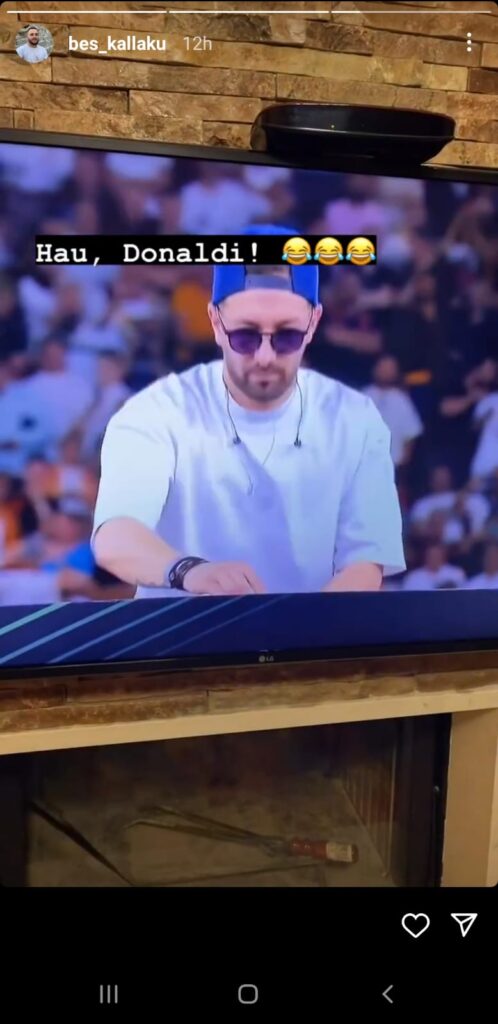 Ndoshta nga stili i veshjes aktori i humorit Bes Kallakut i është dukur si Donald Veshaj. Aktori ka publikuar një video nga performanca e Dj duke shkruar “Heuu Donaldi”, teksa dëgjohet duke thënë: “Po Donaldi çfarë do këtu?”
