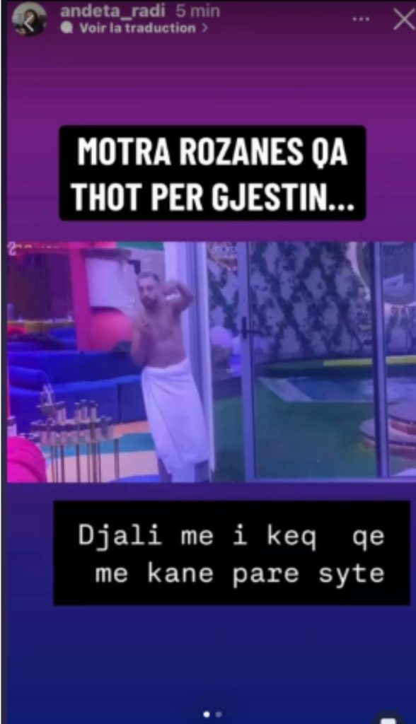 Gjesti në një moment i është drejtuar Rozanës se “Ti e ke dhënë shembullin më të keq, je rrahur me femra jashtë” ani pse këto akuza Rozana i kundërshtoi kategorikisht.