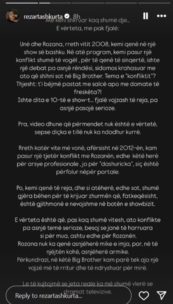 Ajo ka reaguar në mënyrë publike në Instagram, duke hedhur dritë mbi atë që sipas saj ka ndodhur realisht me Rozanën.