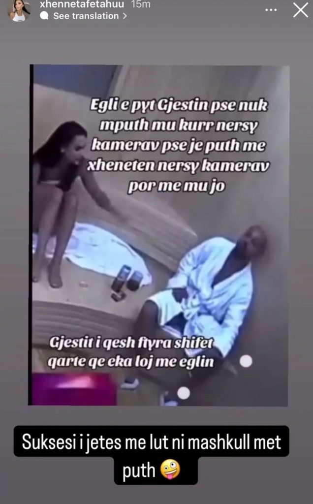 Një situatë mes Eglit dhe Gjestit brenda shtëpisë së “Big Brother VIP” ka bërë xhiron e rrjetit. Egli e ka pyetur Gjestin pse nuk e ka puthur kurrë para kamerave, ndërsa me Xhenetën e ka bërë një gjë të tillë. “Pse me Xhenetën para kamerave dhe me mua jo?”, u dëgjua të thoshte Egli.