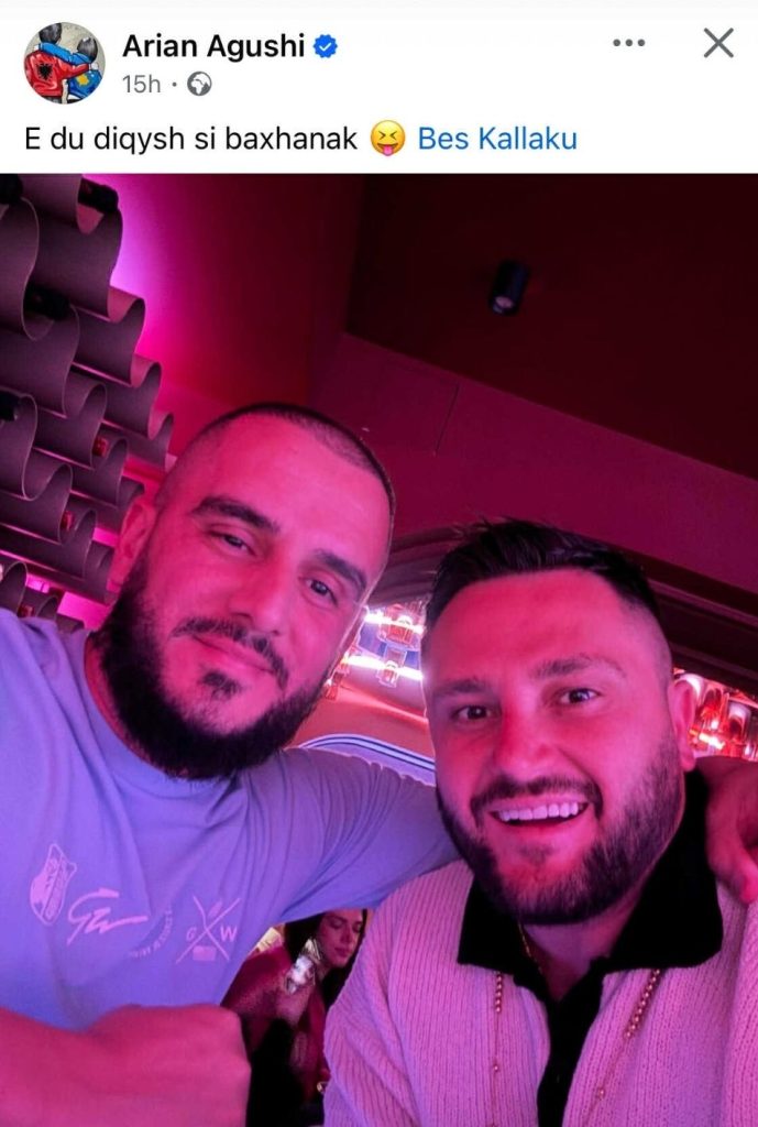 Reperi i njohur shqiptar, Arian Agushi (Gold AG), ka ndezur rrjetin me një postim në profilin e tij në Facebook, ku shfaqet krah aktorit dhe këngëtarit të njohur, Bes Kallaku.