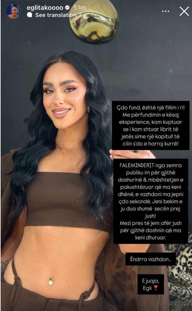 Ish finalistja e ‘Big Brother VIP Albania’ Egli Tako ka reaguar me një shkrim për herë të parë pas daljes.