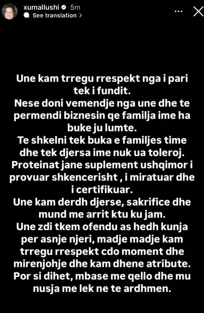 “Unë kam treguar respekt nga i pari tek i fundit. Nëse doni vëmendje nga unë dhe të përmendni biznesin që familja ime ha bukë, ju lumtë. Por të shkelni tek buka e familjes time dhe tek djersa ime, nuk ua toleroj,” shkruan ai.