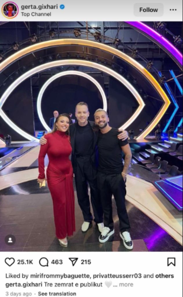 Në një foto së bashku me Ledioni dhe Gjestit ajo ka thumbur ish banorët e tjerë duke shkruar:
