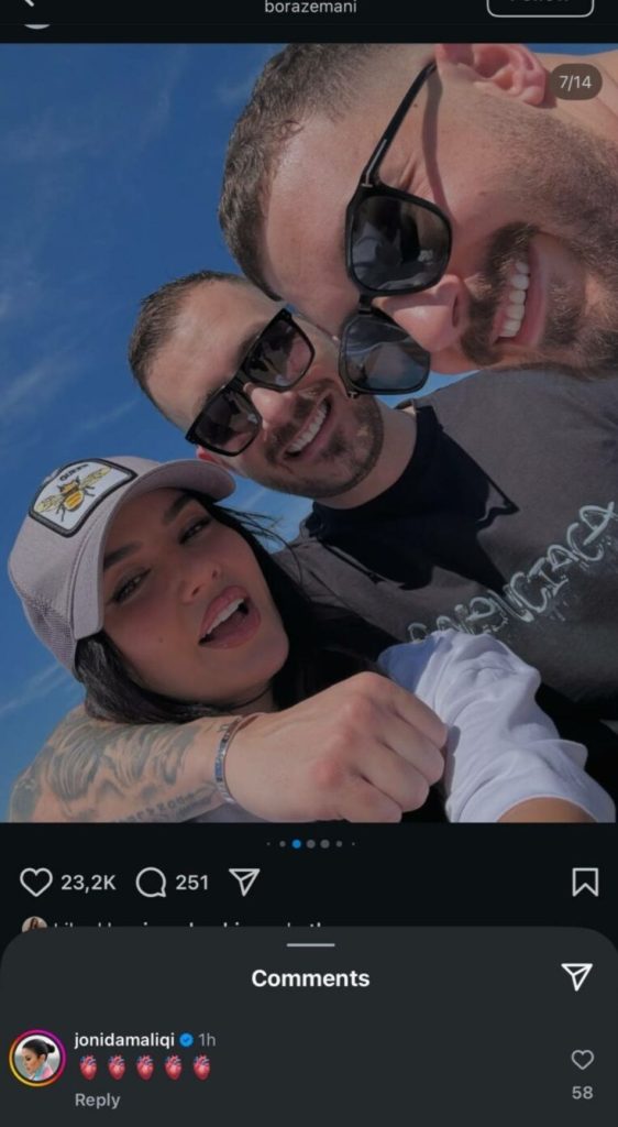 Ajo çfarë bie në sy më shumë është komeni i Jonidës, e cila i kishte dërguar 5 zemra, shkruan IndeksOnline.