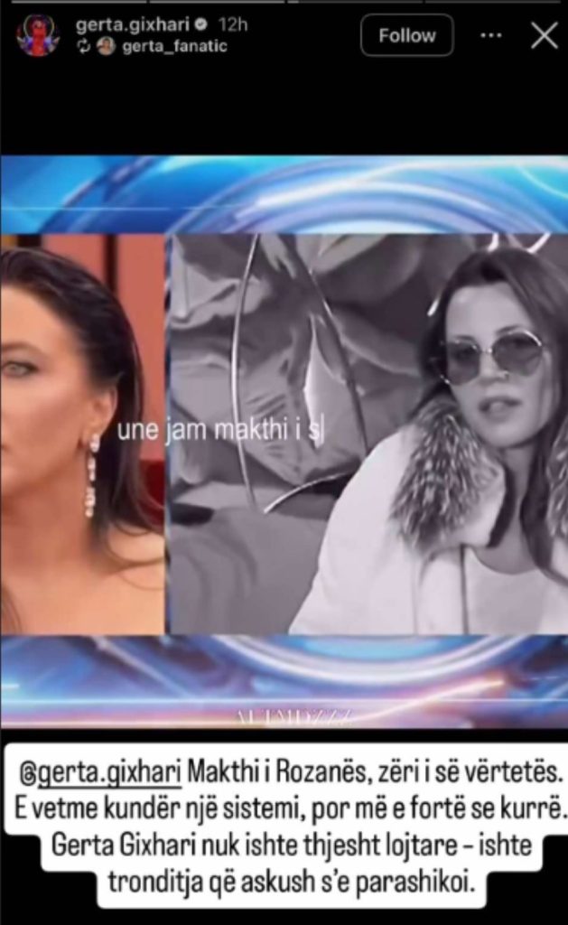 Gerta ka publikuar një instastory që kishin për ndjekësit e saj me këtë shkrim dedikuar Rozanës: