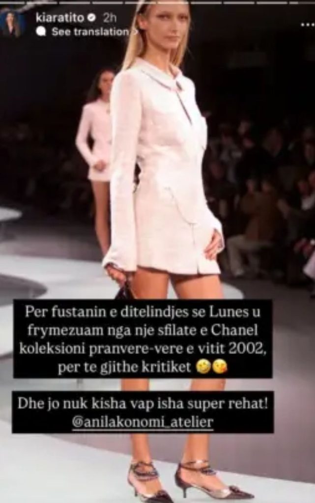 “Për fustanin e ditëlindjes së Lunes u frymëzuam nga një sfilatë e Chanel koleksioni pranverë-verë i vitit 2002, për të gjithë kritiket,” – ka shkruar ajo me një dozë ironie.