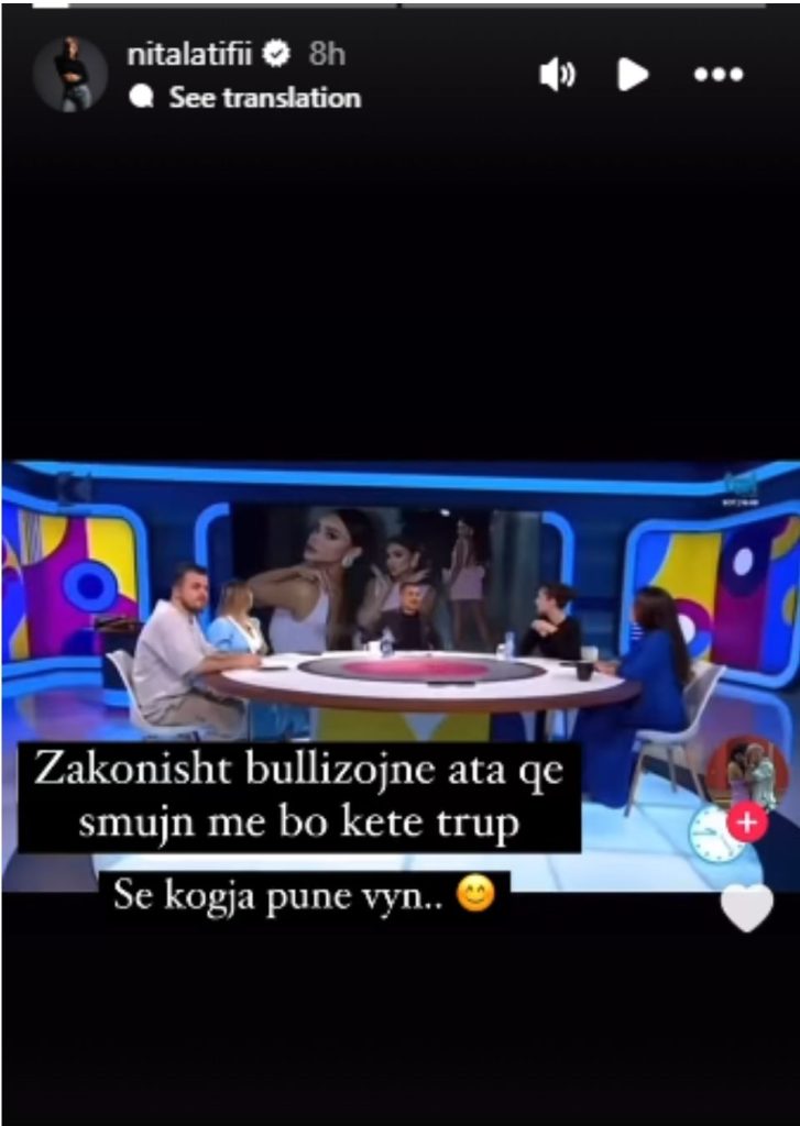 Ky veprim i tyre ka bërë që të reagoj ashpër Nita në llogarinë e saj, teksa ka shkruar “Zakonisht bullizojnë ata që s’mujn me bo këtë trup, se kogja punë të vynë”
