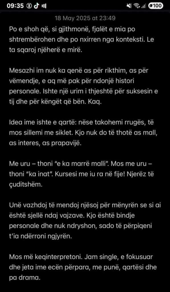 “Jam single, e fokusuar dhe jeta ime ecën përpara, me punë, qartësi dhe pa drama.”