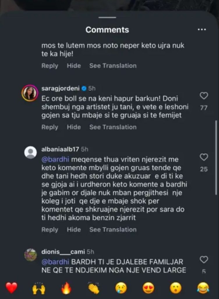 Por ky reagim solli një stuhi komentesh në rrjet, ku shumë ndjekës aluduan se postimi nuk ishte bërë nga Bardhi, por nga gruaja e tij, Sara Gjordeni. Komentet u bënë pikërisht në postin e Iconstyle.